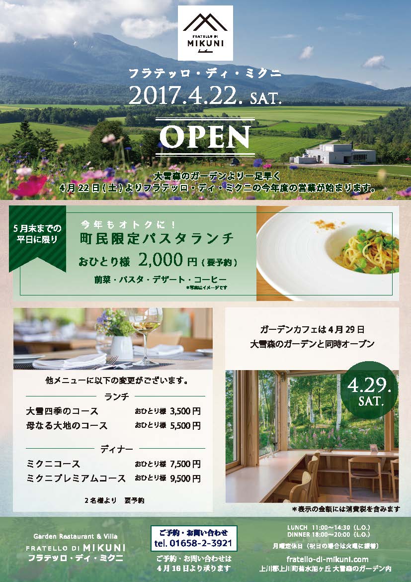 ガーデンおよびレストランのオープン情報は旭ヶ丘だより4月号をご覧ください。