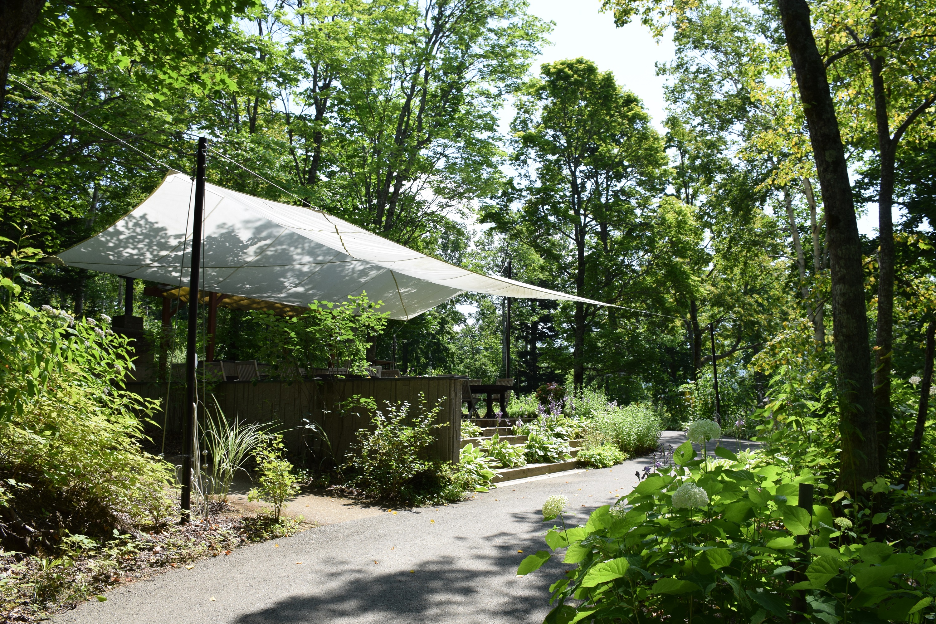 強い日差しの時や急な雨の際には、こちらの森のキッチンのタープの下で休憩することができます。毎月1回開催された「ガーデナーズワークショップ」もここで行いました。来シーズンもワークショップをする予定ですので、一緒に植物を使った手づくりを楽しみましょう♪