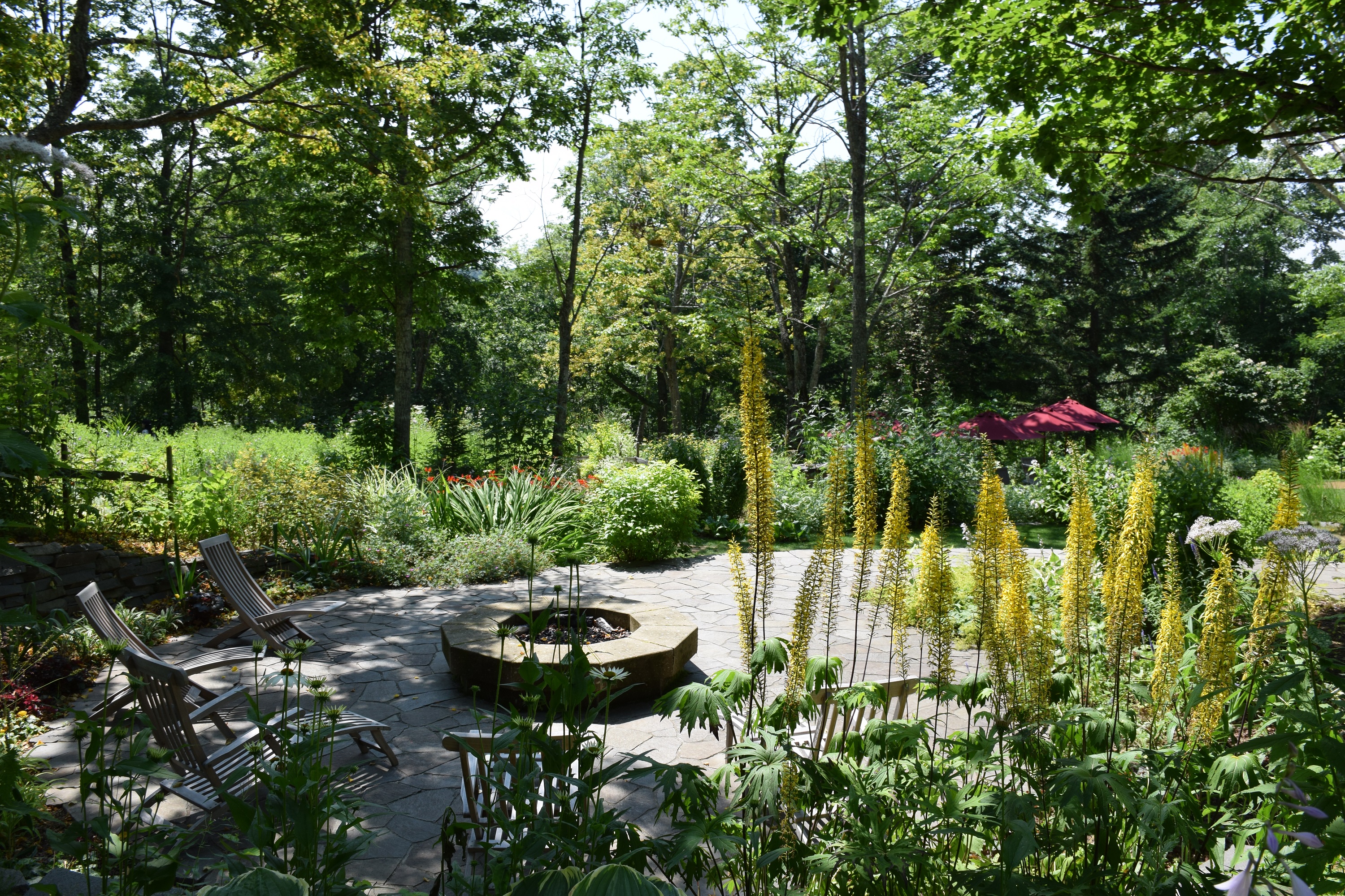 森のリビングには、リグラリア・プルゼワルスキーがすっとまっすぐに太陽に向かって花を咲かせています。下から徐々に咲いていくので、長い間お花を楽しめるところがいいですね。