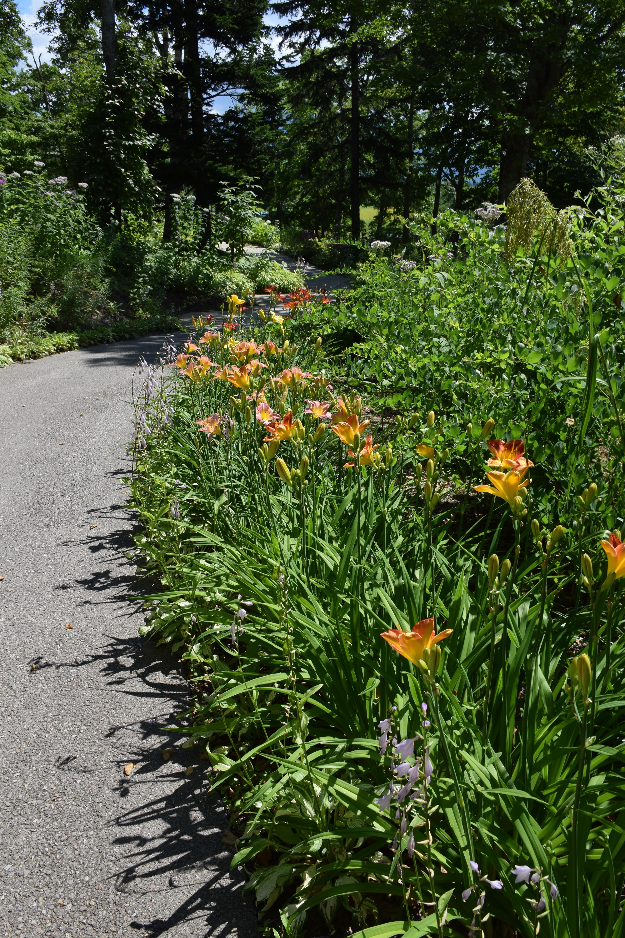 緑の中で色とりどりのヘメロカリスが夏を感じさせてくれます。