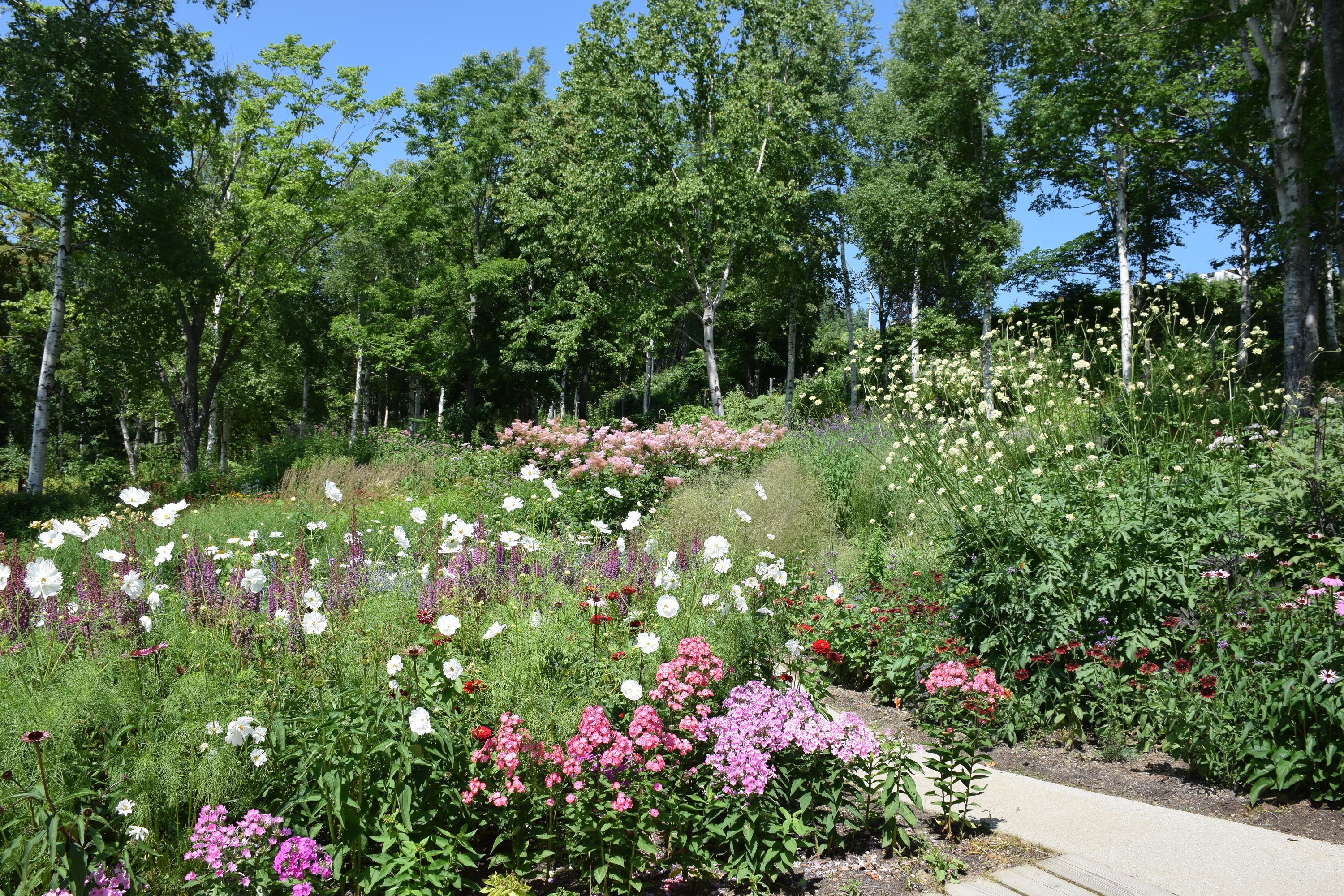 初めて、カムイミンタラの一部に一年草も織り交ぜてみました。白のコスモスが大人気でした。