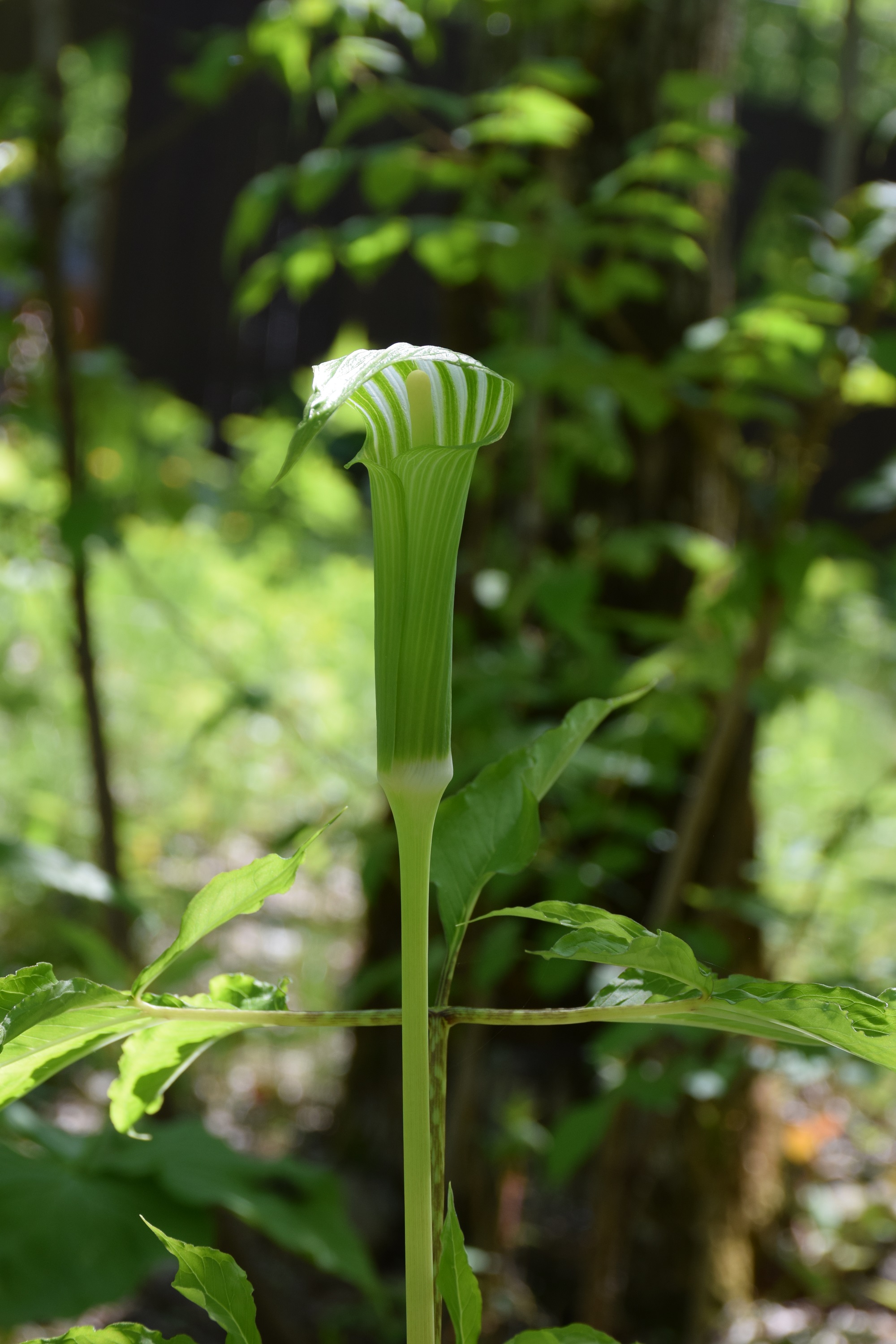美しい緑のマムシグサ。光が差すとすらっとした草姿の美しさが際立ちます。