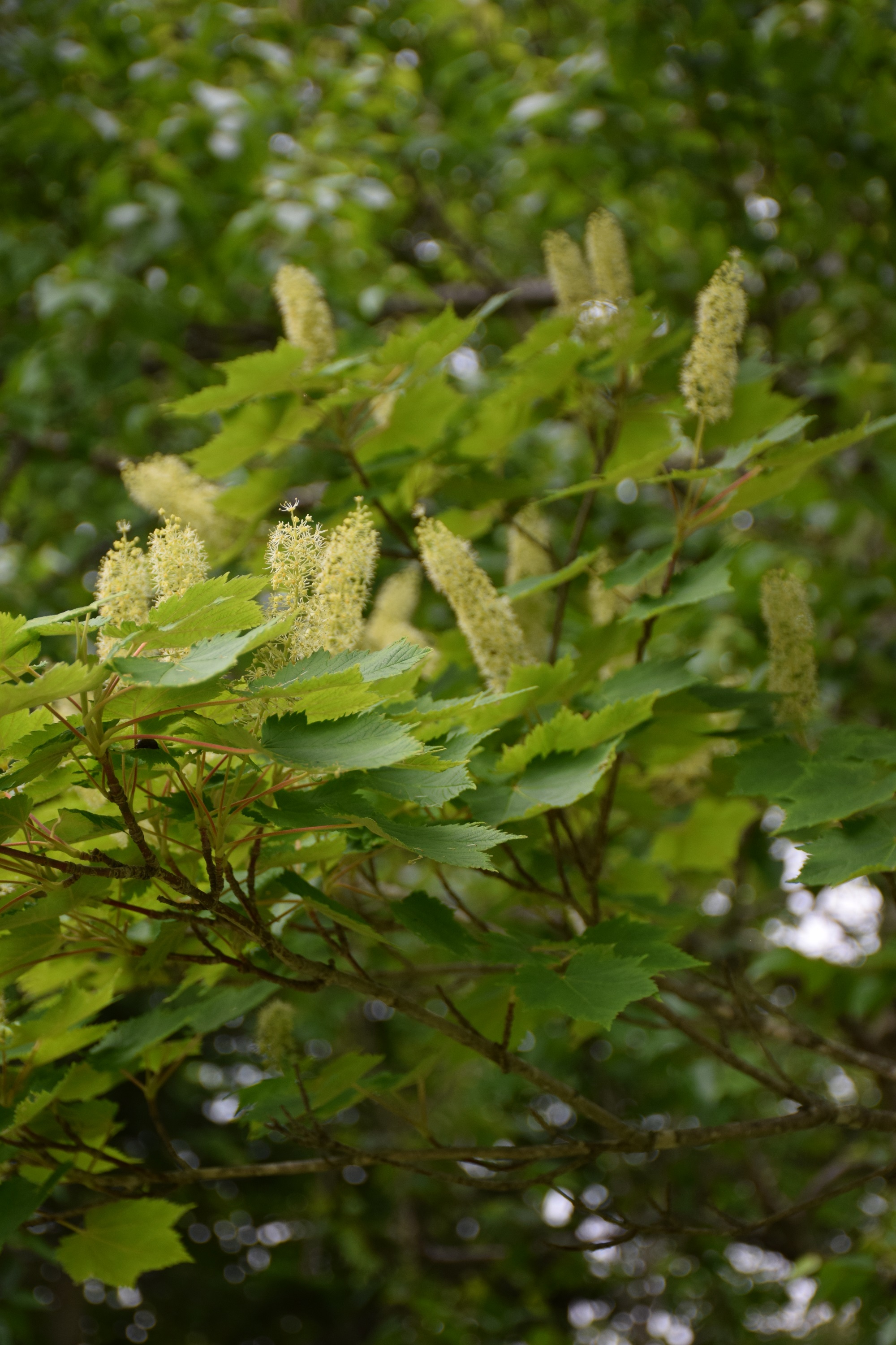 大雪山系でも見られるオガラバナ。カエデの仲間ですが、花が穂状に咲くのでホザキカエデとも呼ばれます。