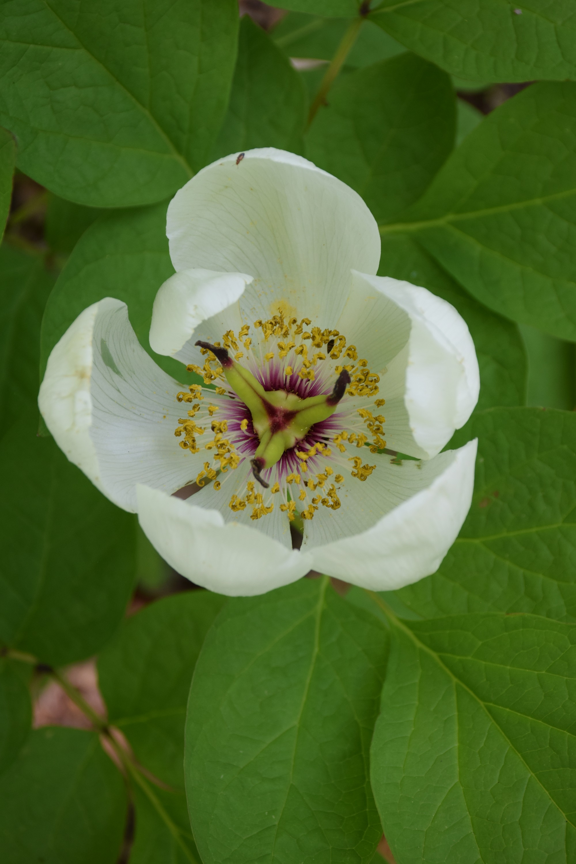 大好きなお花の一つなので、いつもご紹介していますが、ヤマシャクヤクです。カップ状に開くとても薄くて透ける白色の繊細な花びら、中には対照的なしっかりとした雌蕊とたくさんの雄蕊。雌蕊の柱頭と花びらの中心のきれいな紫色、どれをとっても美しい。