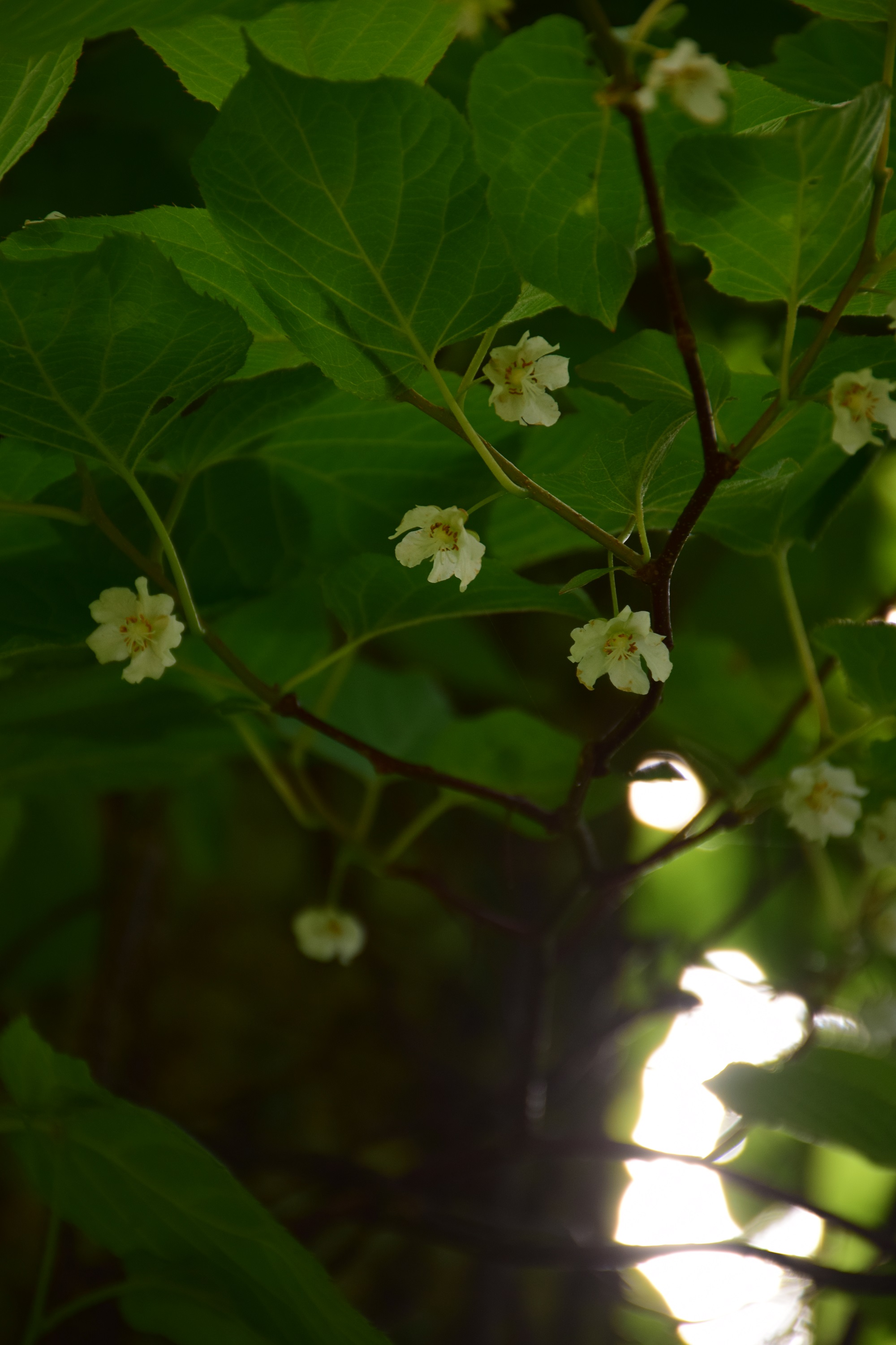 こちらはミヤママタタビの雌花です。甘い実がなる方です。高地に自生し葉先が白からピンク色になる不思議な植物です。