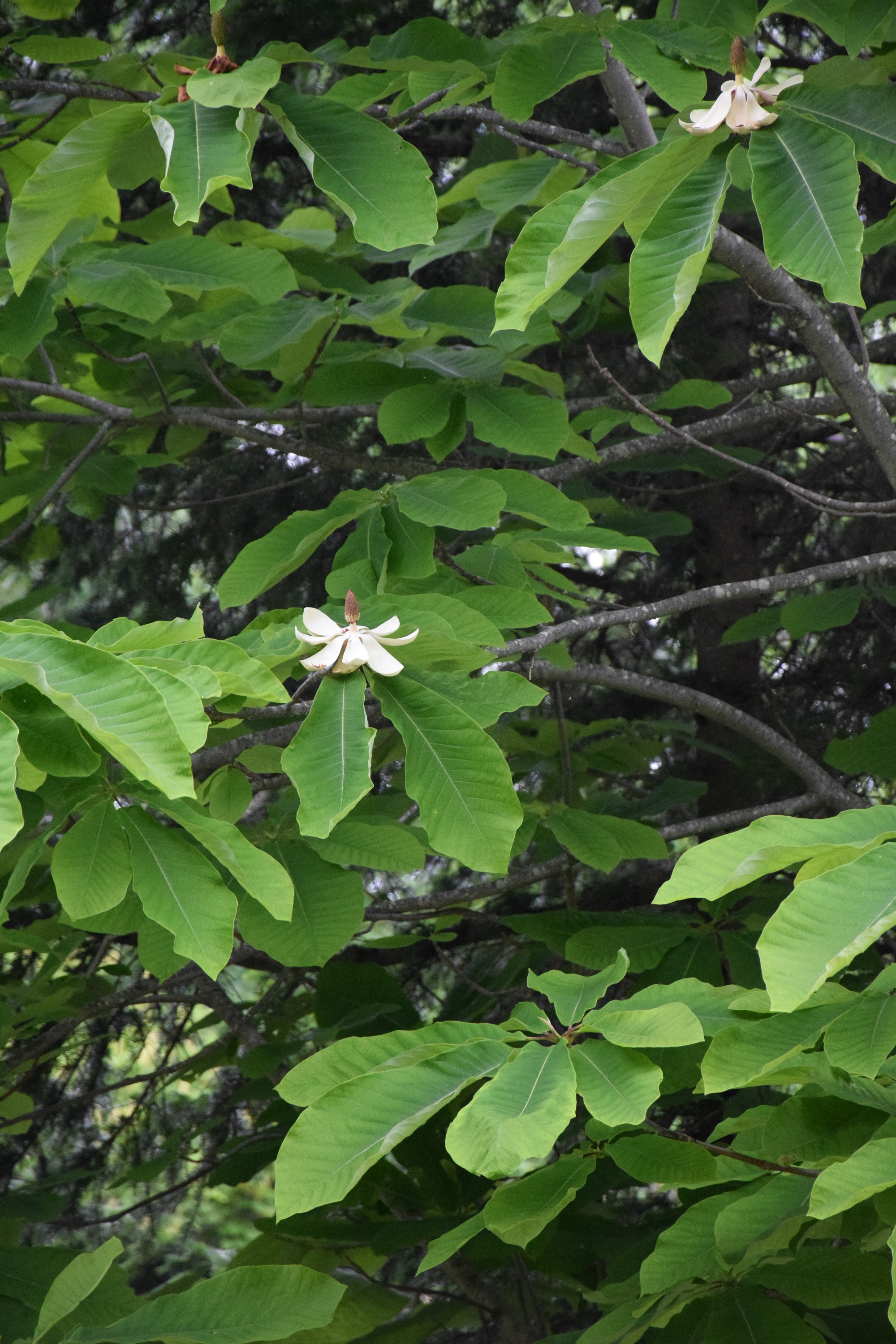 木々の花を楽しめるのもこの時期です。ホオノキの下を通ると甘い香りが漂ってきます。そんな時はどうぞ上を見上げてみて下さい。葉も大きいですが、花も大きいです。