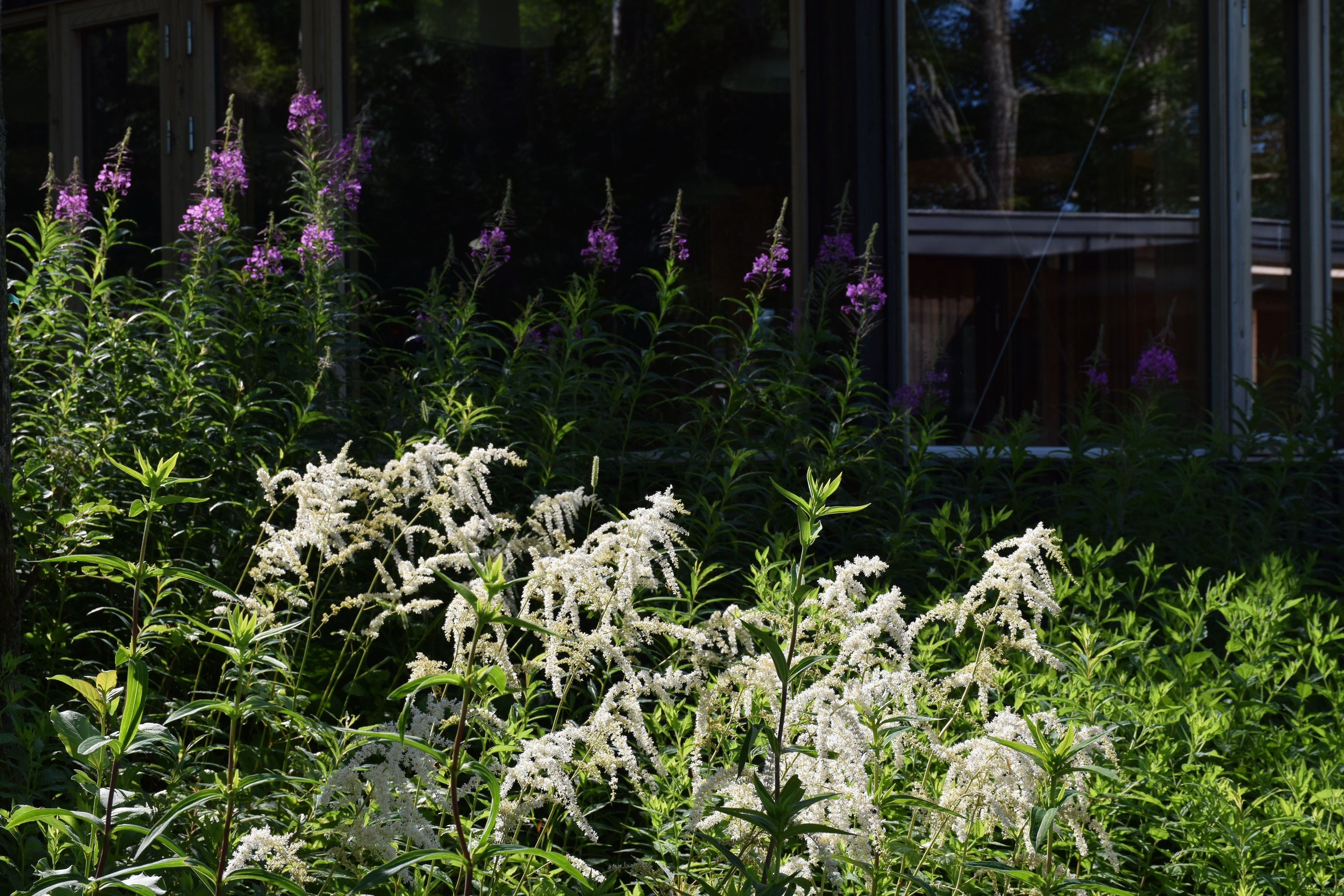 バラも素敵だけれど、やっぱりエゾクガイソウ(写真上)やトリアシショウマ、ヤナギラン(写真下)などの野草も森の中のガーデンにはよく似合う。